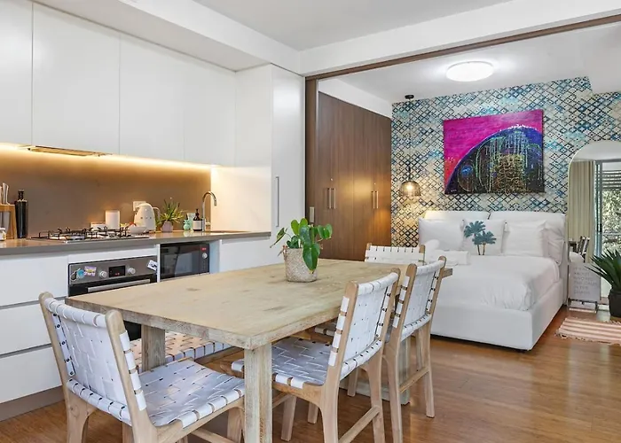 Este apartamento en Sídney está a unos 6 km del Puente del Puerto de Sídney y a unos 3 km de la Iglesia de Santiago. Este apartamento de 50 m² se encuentra a 3 km del centro de Sídney. El Apartamento Urban Oasis In Waterloo With Private Balcony está a unos 10 minutos en coche de la Ópera de Sídney.